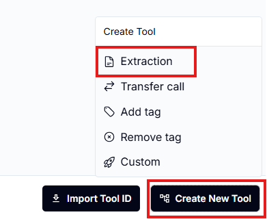 Go to the Tools Tab and click Create Tool > Extraction.