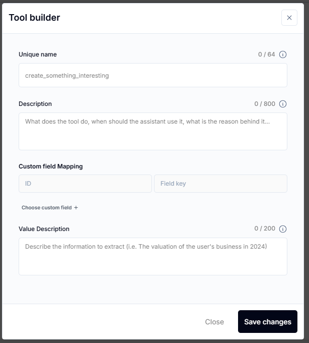 In the tool settings, map each parameter to a custom field.