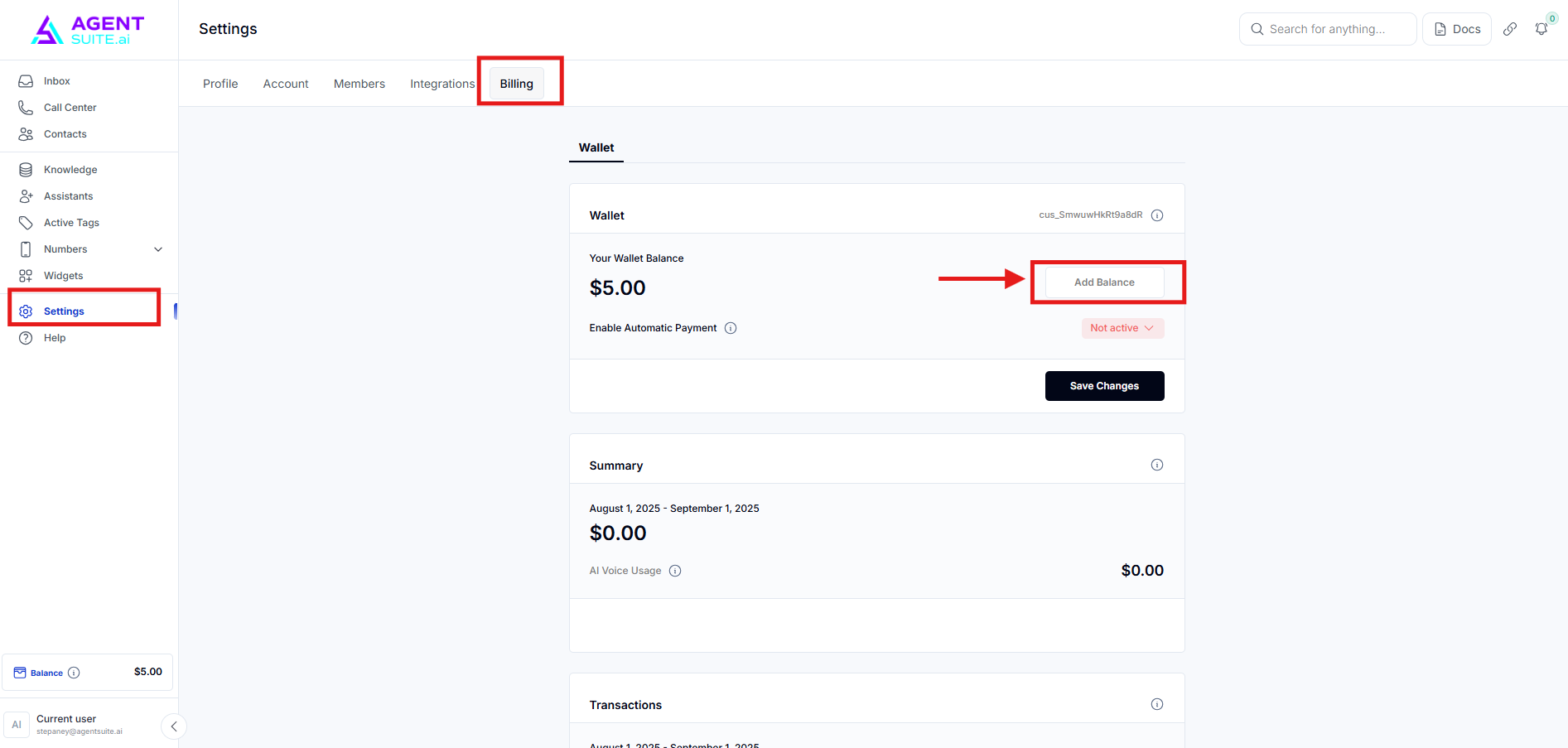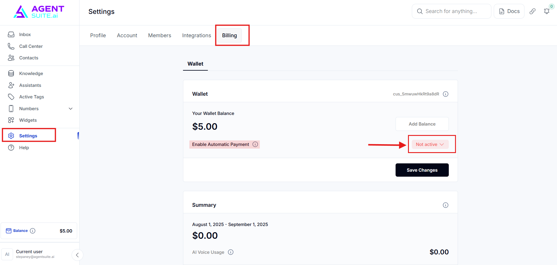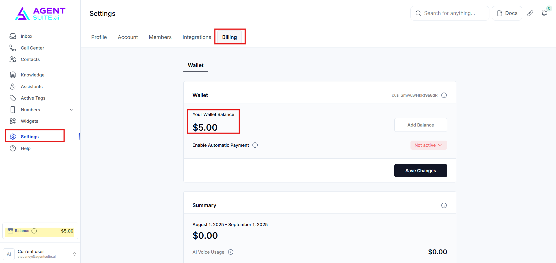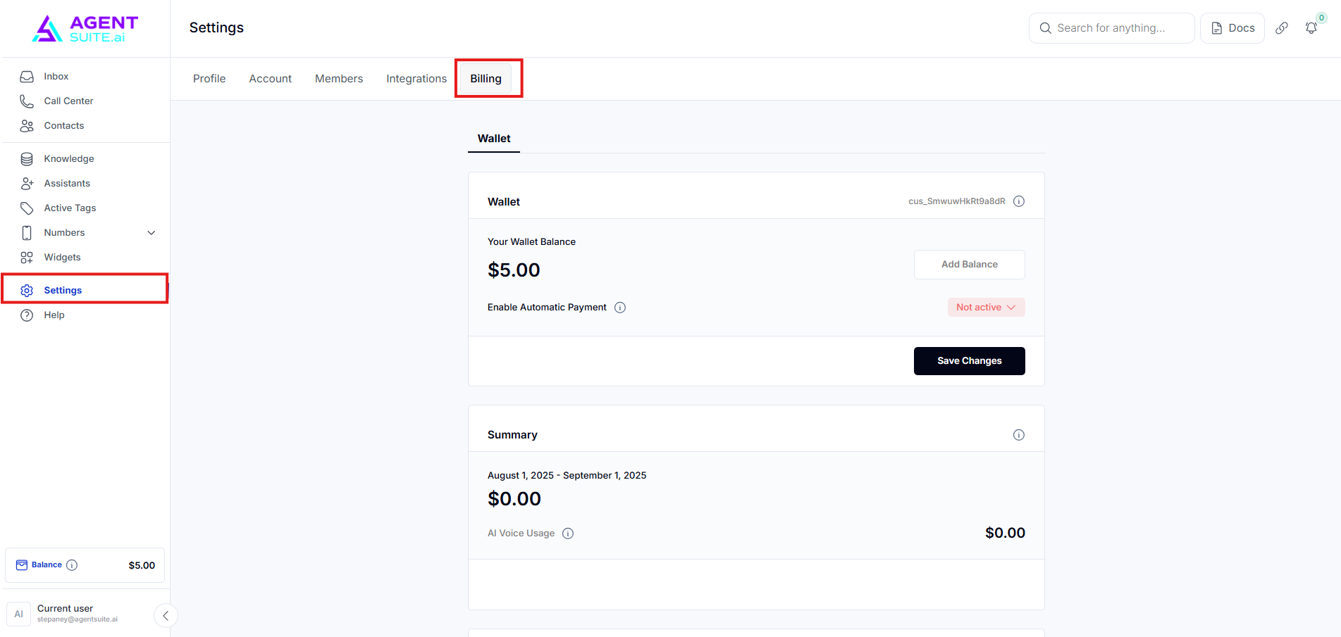 Billing- where you can update your payment method or card information associated with your Voice AI account.