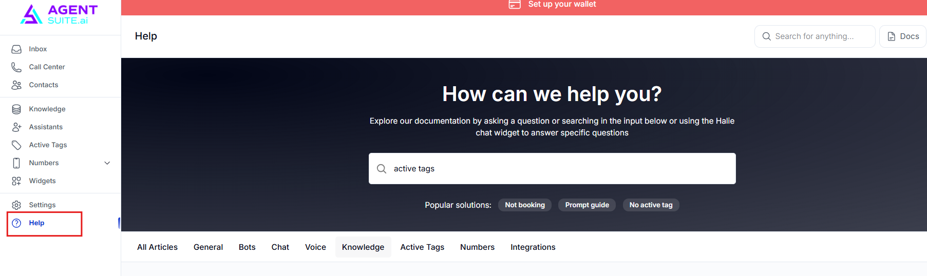 this section allows you to search for assistance within the portal. However, it currently contains limited support articles. For better and more comprehensive help, we recommend reaching out directly to Agent Suite support.