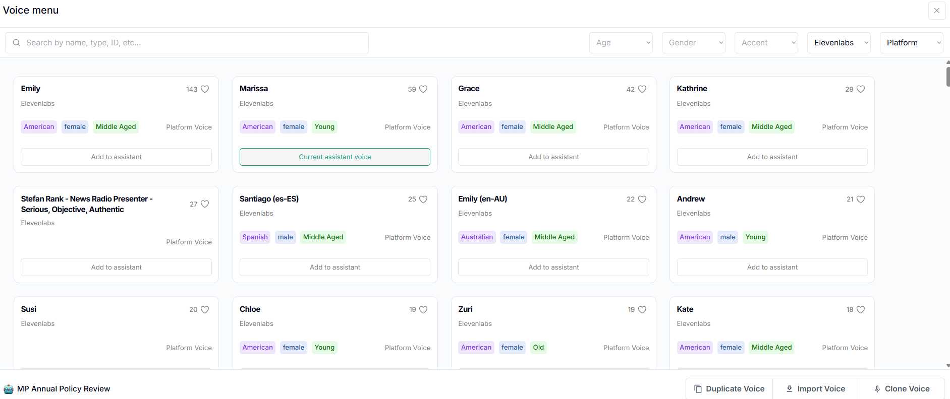 NOTE: If you’d like to use outbound Voice for multiple lines of business, you’ll need to copy the MP Policy Review Assistant along with its prompt, then update the prompt to match the specific line of business you want to target. Currently, the only prompt we have set up for outbound and inbound is for Mortgage Protection.
