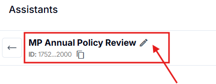 You can change the name of the assistant here. But you likely won’t need to. It can stay as ‘Inbound Receptionist’ or the ‘MP Annual Policy Review’. The only place that needs the name of the AI assistant is in the prompt.