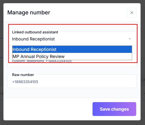 Here is also where you can assign your number to your Assistant. By clicking the three dots, you can choose the Assistant you’ve created to link it.