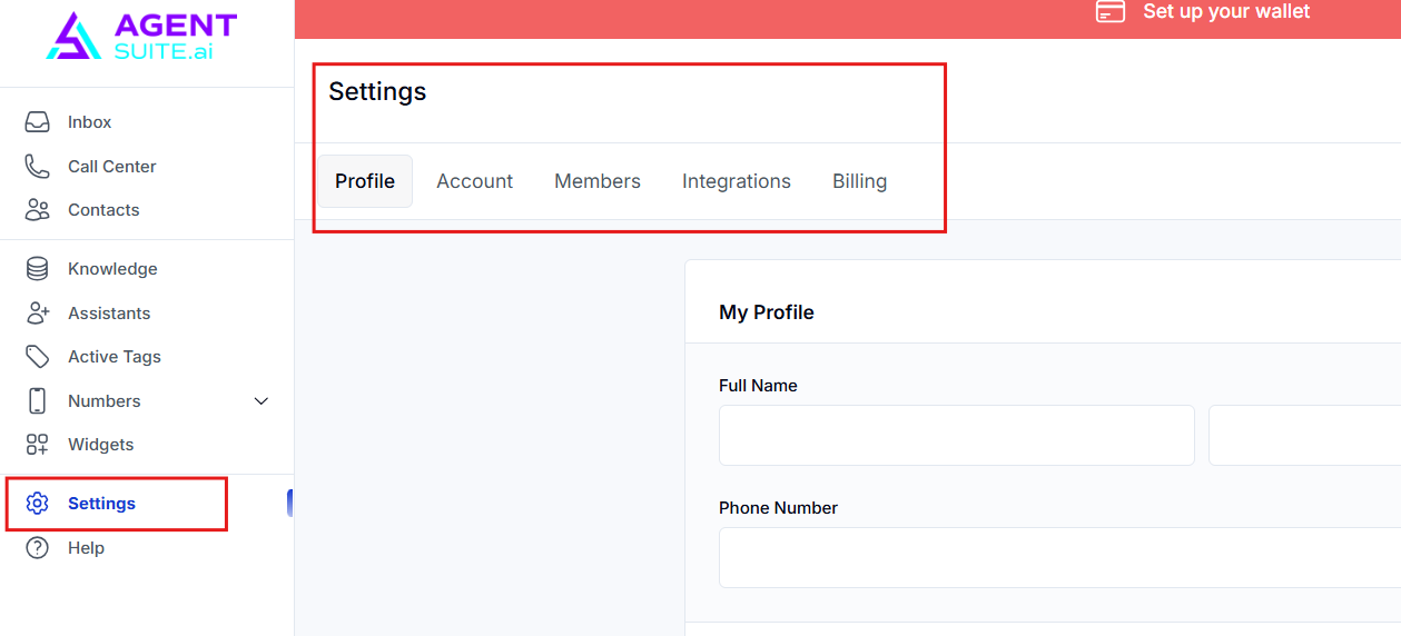Integrations- no need to configure anything in this section, as your Voice AI is already integrated with your Agent Suite account.