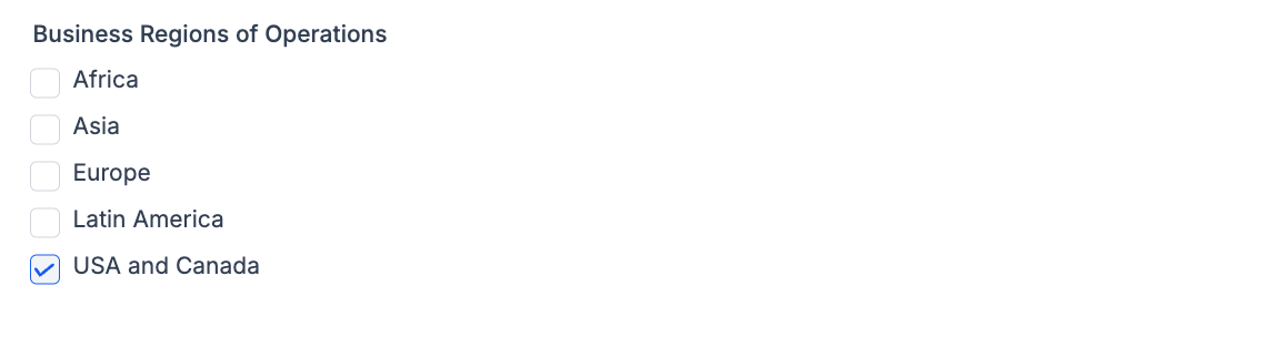 Select the regions your business operates in. If you are a global company, select the regions that you do most of your sales in. This is a multi-select setting, so you are able to choose more than one region.