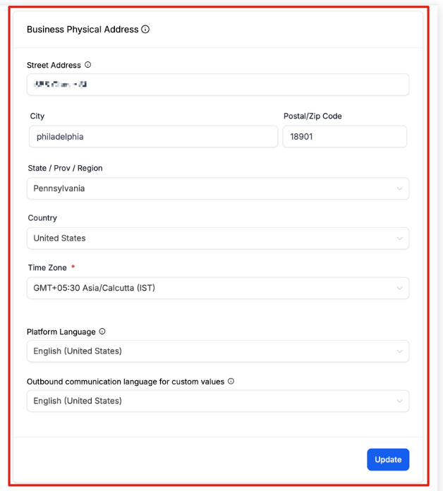 These fields act as the single source of truth for location and locale preferences in HighLevel. Complete each entry carefully, matching official records where noted. After updating, save your changes and spot-check a booking page and a test email/SMS to confirm that dates, times, and formatting look correct.