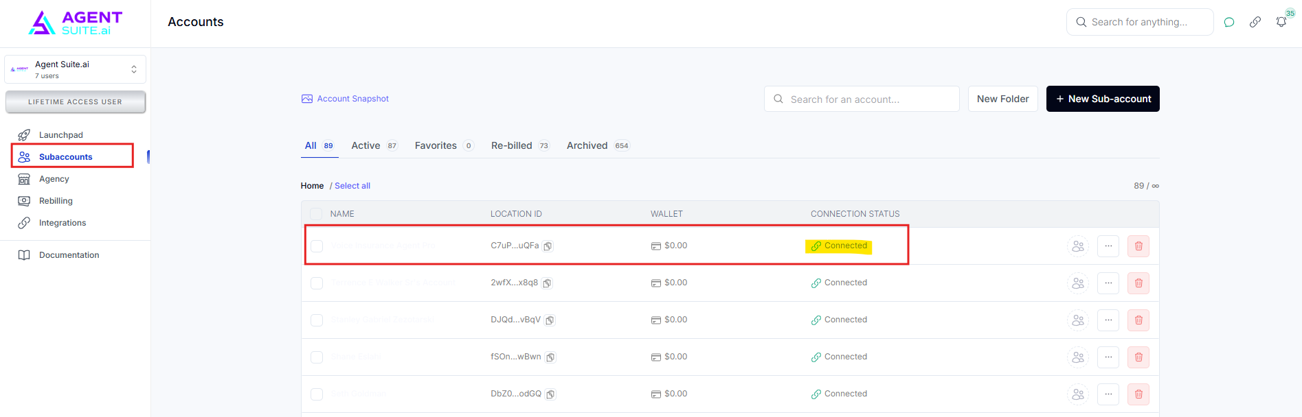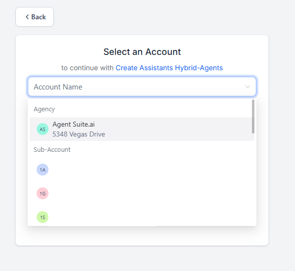 2. Search for the sub-account you wish to connect to.