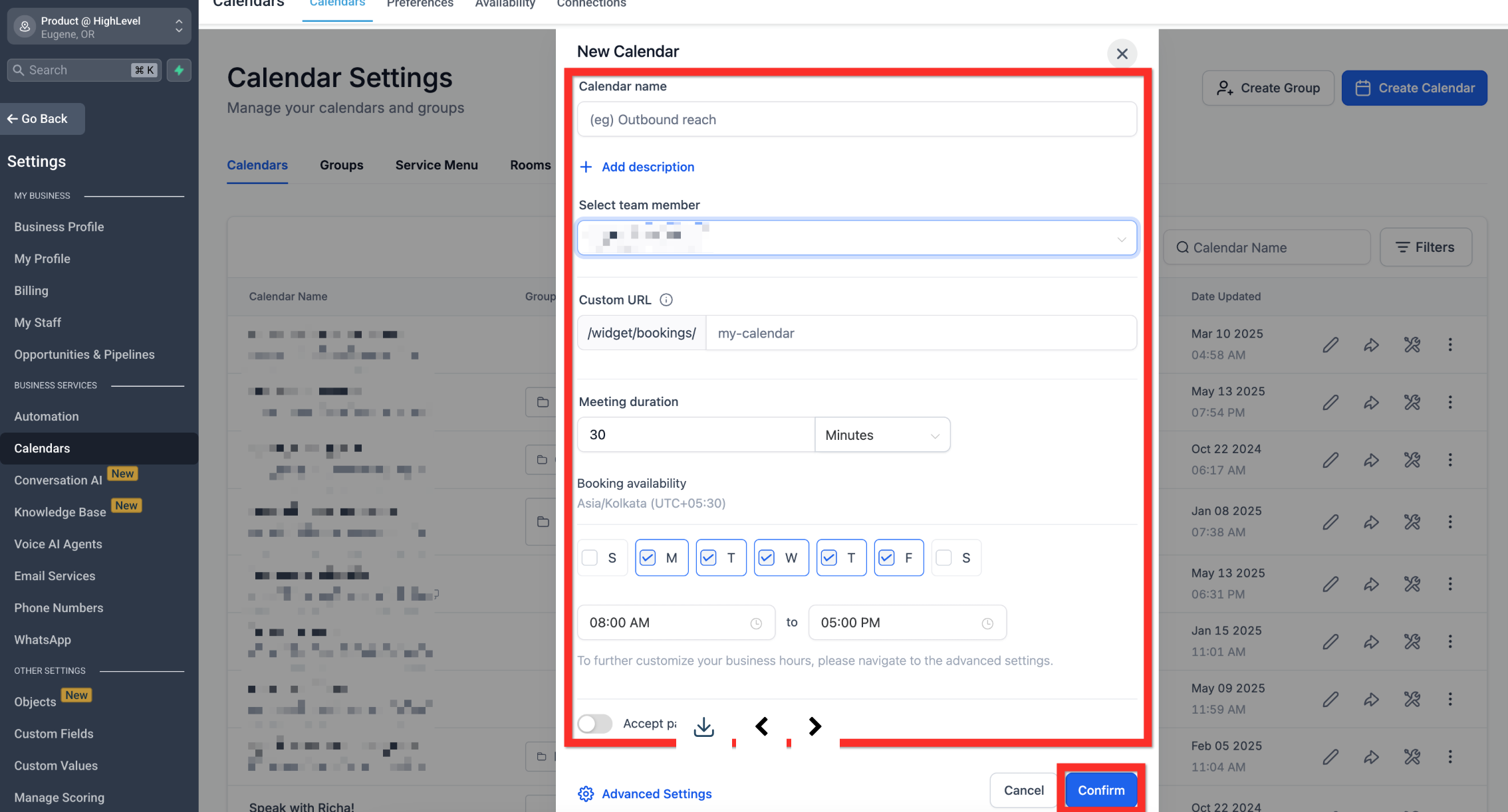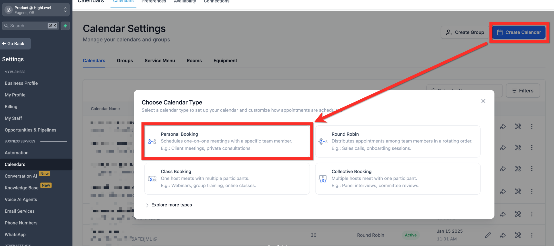 To use Google Calendar for scheduling appointments, it's essential to first create a HighLevel Personal Booking Calendar. This booking calendar serves as the foundation for your scheduling rules—allowing you to configure availability, buffer times, meeting durations, and reminders. Even if you use Google Calendar daily, this calendar is required to manage how bookings are accepted and displayed within HighLevel.