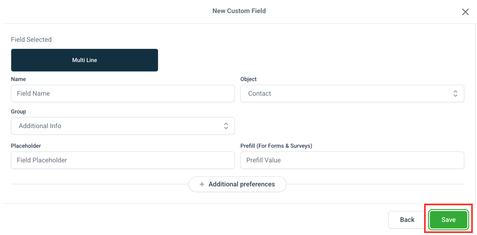 Step 5: Click Save to create the custom field.