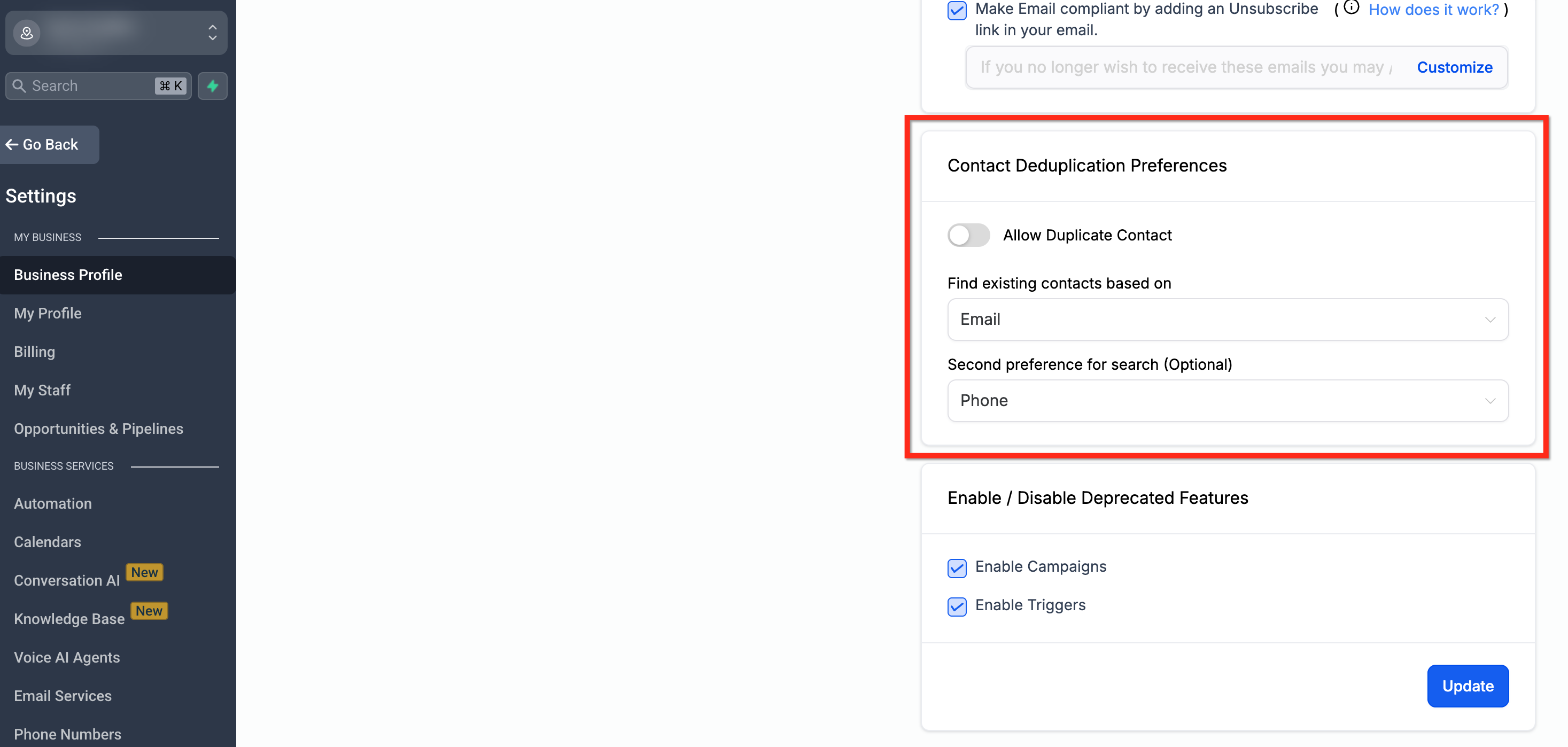 Avoiding duplicate contacts at the source can save significant time and confusion later. Contact Deduplication Settings give you control over how the system handles new contact entries, allowing you to prevent duplicates before they happen.
