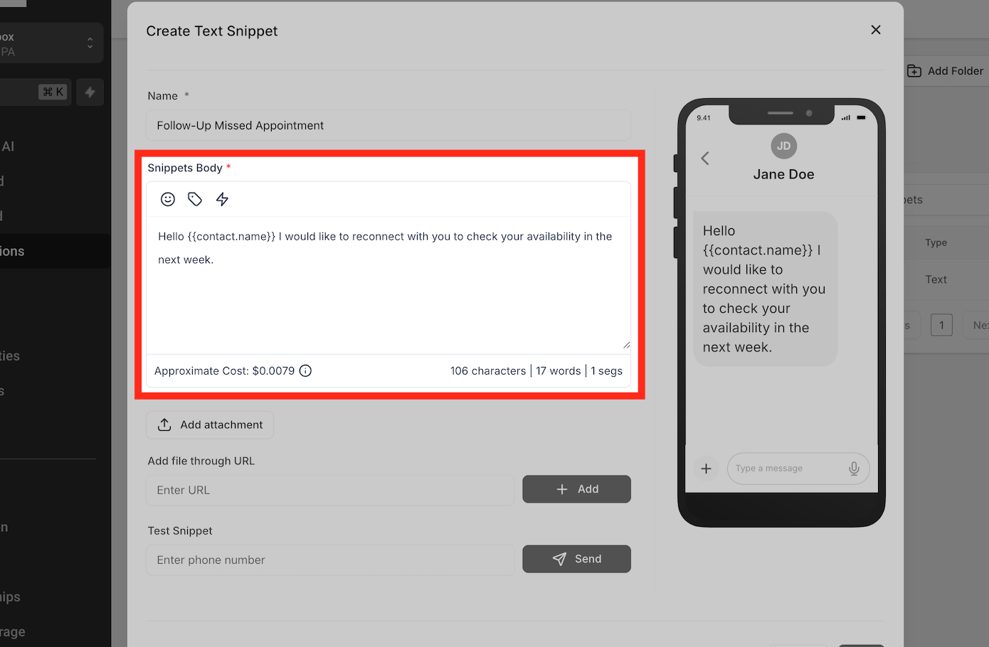 Whether it's responding to FAQs, following up on missed appointments, or managing recurring queries, Snippets eliminate manual efforts and maintain professionalism.