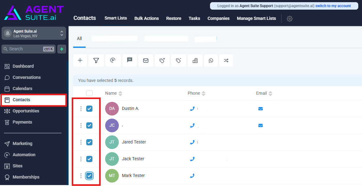 Use the checkboxes on the left to select the contacts you’d like to remove tags from. You can select individual records or use filters to narrow down groups.
