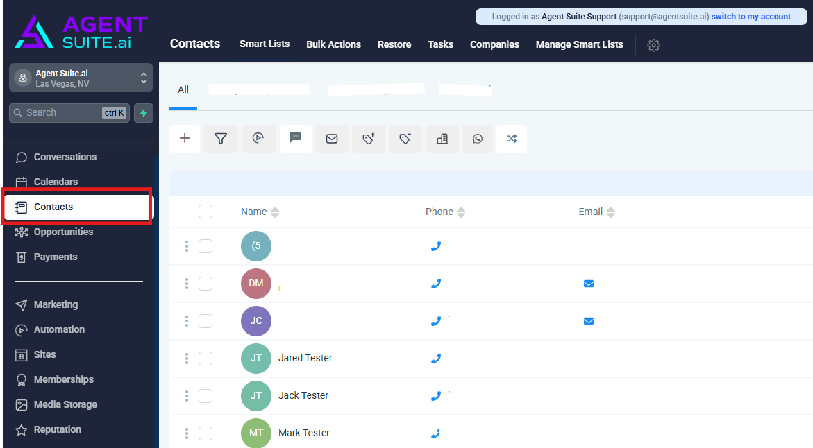 From your dashboard, click on the Contacts tab in the left-hand navigation menu