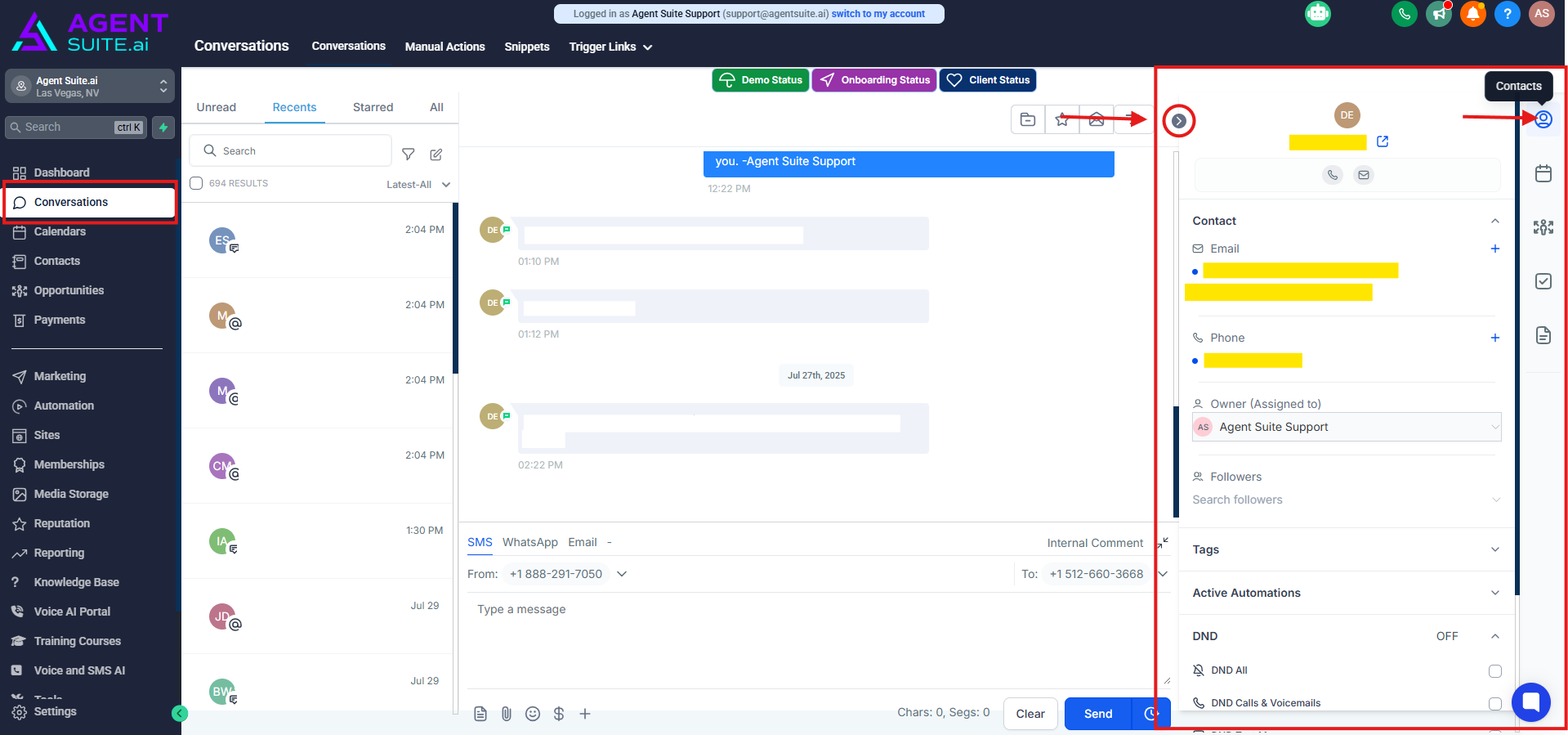 Users can now add, edit, and manage contact details seamlessly, covering everything from name, phone number and email to owner details, tags, campaign associations, and the all-important DND (Do Not Disturb) settings. It’s a one-stop-shop for keeping your contact database up-to-date missing any ongoing conversation.