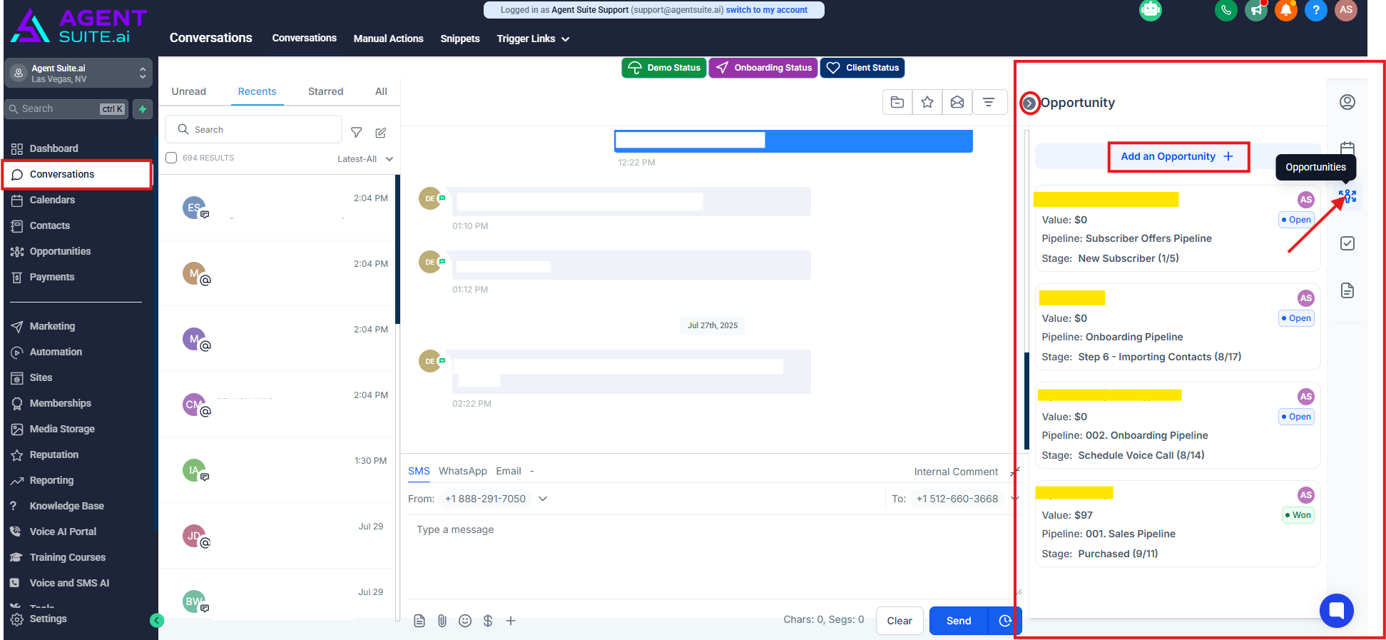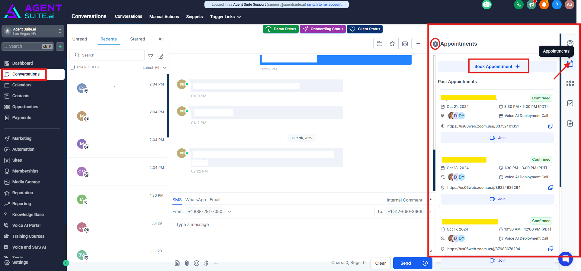 With just one click, you can seamlessly switch between "Contact," "Appointments," and "Opportunity" views, tailoring your experience to your needs. No more switching between multiple modules—everything you need is now right within Conversations.