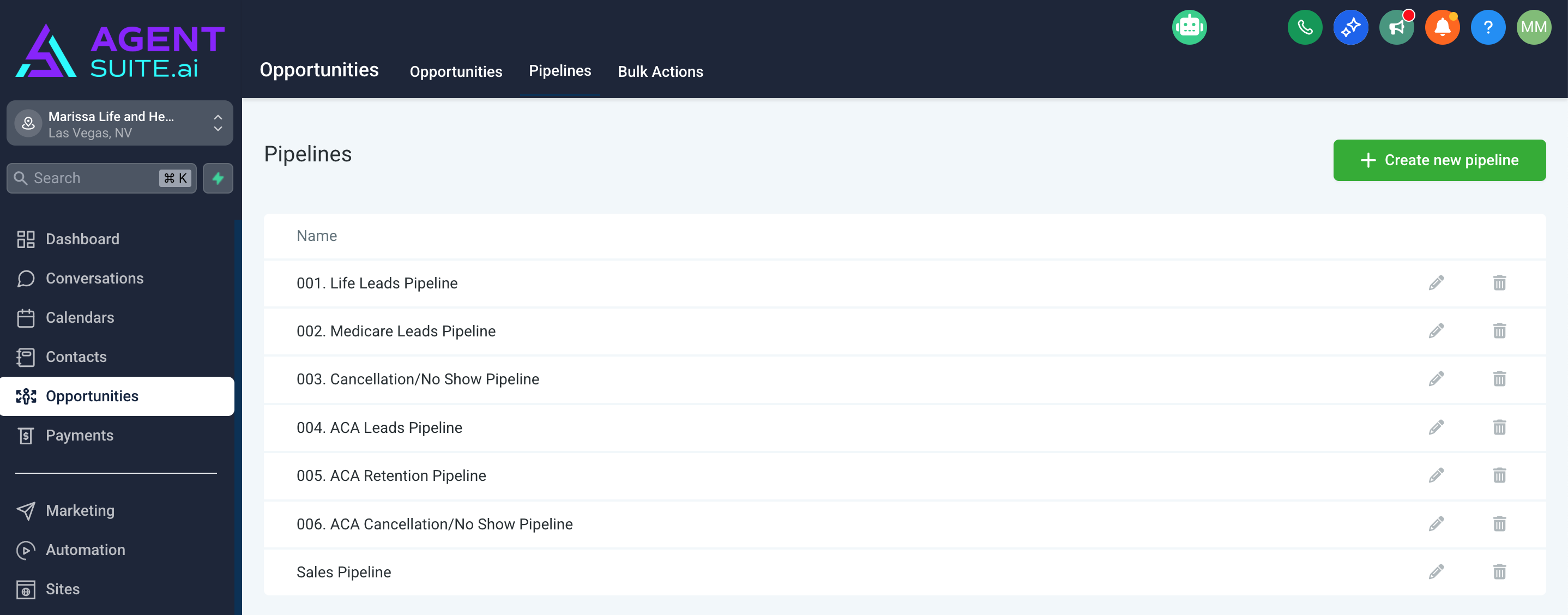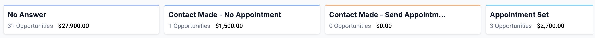 Stages will include every lead status option such as No Answer, Appointment Set, or Application Approved.