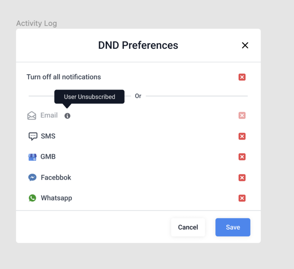 You can now customize Do Not Disturb (DND) settings for specific channels—Facebook, SMS, Calls, Emails, Google My Business, and WhatsApp—once they are integrated into the system.